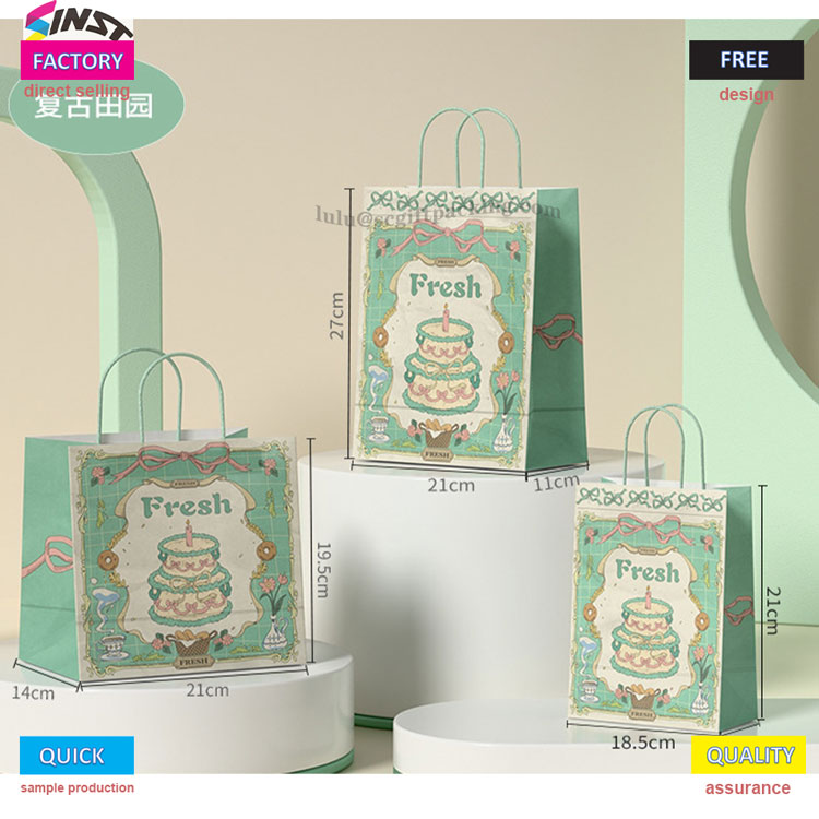 The side of the bag is integrated with logos such as "baking" and "cake", naturally blending brand elements to enhance the exclusivity and quality of the gift bag. This gift bag is available in a variety of sizes, covering small cakes, Dim sum gift boxes and other gift sizes. Whether it is a family gift or a birthday party distribution, you can find the right size, practical and considerate.