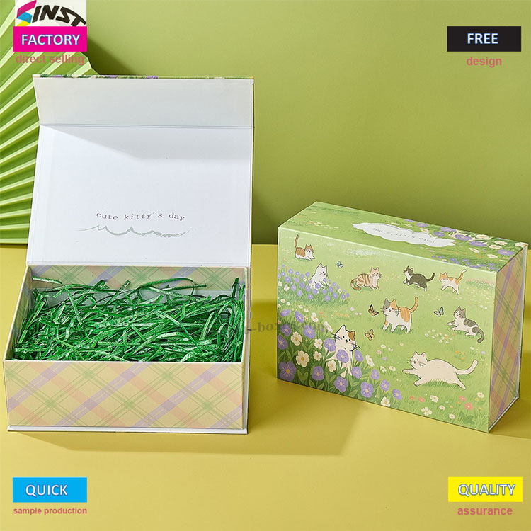 Esta caixa de presente com pingente de pelúcia é um estilo fofo e curativo combinado com padrões xadrez verde claro e bege, o que faz as pessoas se sentirem melhor à primeira vista. A caixa de presente com pingente de pelúcia de gato fofo é feita de papelão grosso, que é quadrado e não se deforma facilmente, e não será esmagada ao instalar pingentes de pelúcia ou chaveiros. O método de abertura é muito especial, com design flip e forro Lafite verde, dando uma sensação de cerimônia na hora de abrir presentes como na abertura de envelopes vermelhos.