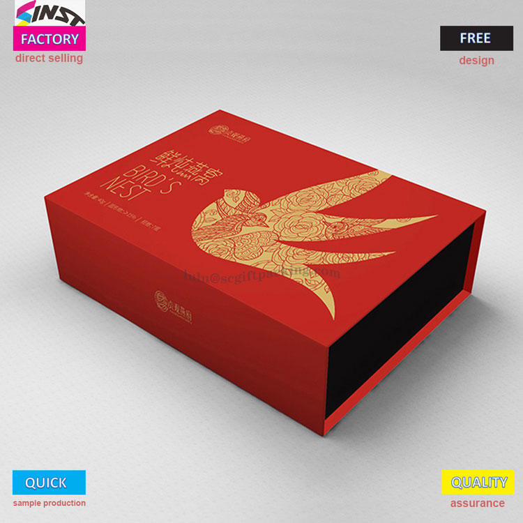 Esta caixa de presente de capa de ninho de ninho de pássaro de ponta é baseada na luxuosa correspondência de cor vermelha e preta. A caixa externa é feita de papelão rígido com um design magnético de abertura e fechamento. Quando a caixa é aberta, o revestimento de espuma de precisão interna está presente. Seis partições independentes cuidam com precisão de cada garrafa de ninho de pássaros pronto para comer, que tem beleza visual e proteção prática. Seja vendendo no shopping ou dando presentes à família e aos amigos para expressar seus sentimentos, todos eles mostram estilo.