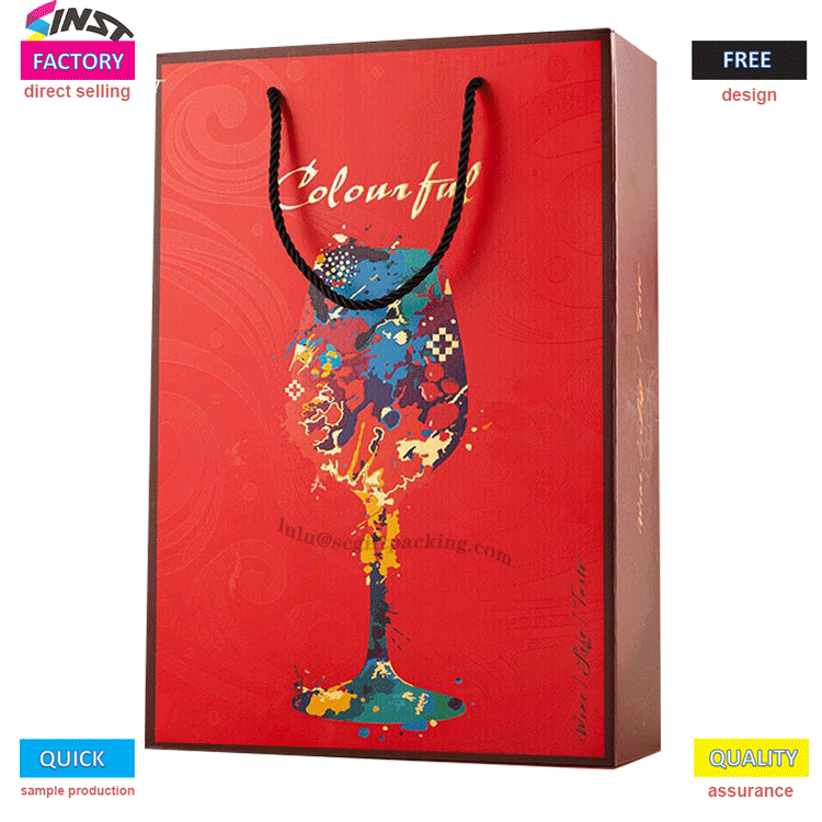 As alças em forma de corda preta em ambos os lados dobolsasão feitos de fita tecida espessa, capazes de suportar 10kg sem deformação e são estáveis para armazenar vinho tinto, caixas de presente ou lembranças; A superfície do papelão vermelho é coberta com água para evitar sujeira, mesmo que esteja manchada de álcool ou impressões digitais, pode ser limpa com um pano úmido; Não há acolchoamento adicional no interior, mas o espaço é reservado através do corte tridimensional, que pode acomodar uma garrafa de vinho tinto de 500ml sem abaulamento. Melhor ainda, o design dobrável oculto na parte inferior permite o armazenamento achatado quando a sacola está vazia, economizando espaço logístico - do local de exposição até a casa do cliente, pode ser "sem preocupações até o fim".