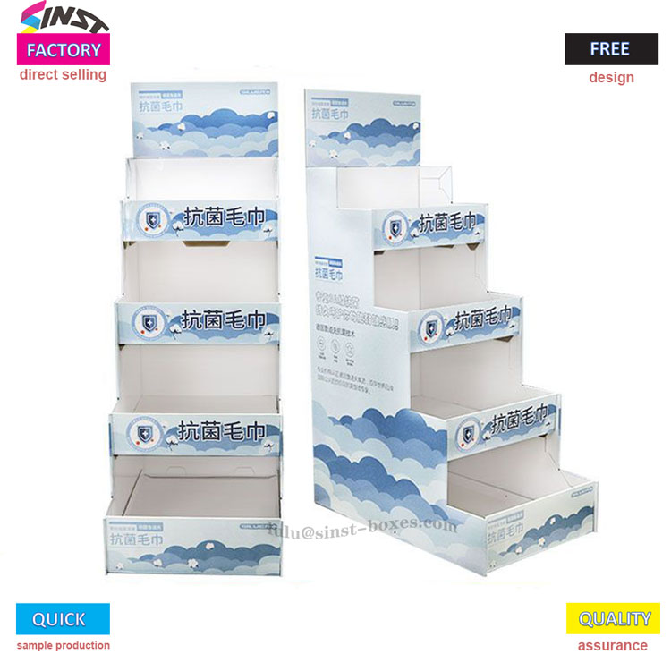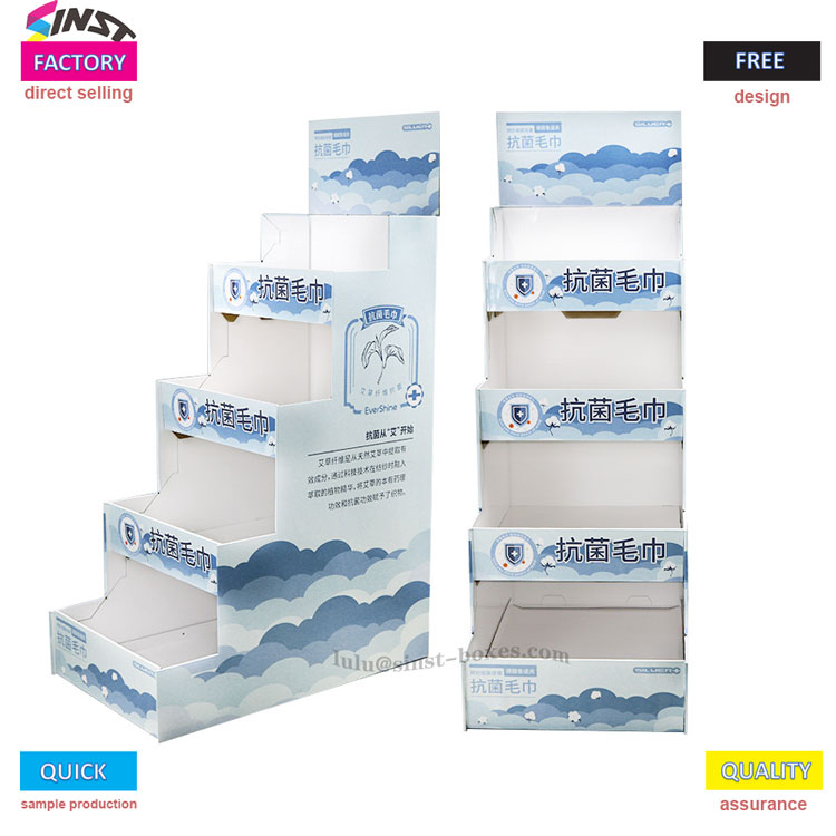 Contanto que você escolha o expositor de papelão para toalhas SINST PRINTING, todos os problemas podem ser facilmente resolvidos. Contamos com uma equipe profissional para lhe fornecer soluções de design eficazes e, claro, também contamos com equipamentos de impressão profissionais para concluir a entrega dentro do prazo que você especificou. Somos uma fábrica poderosa com prazo de entrega e qualidade garantidos.